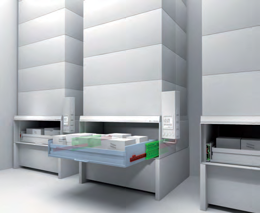 Rollon 的伸缩式直线导轨和执行器也用于在建造自动化仓库中涉及的一些应用,如拉出抽屉、隔间和移动机器人。